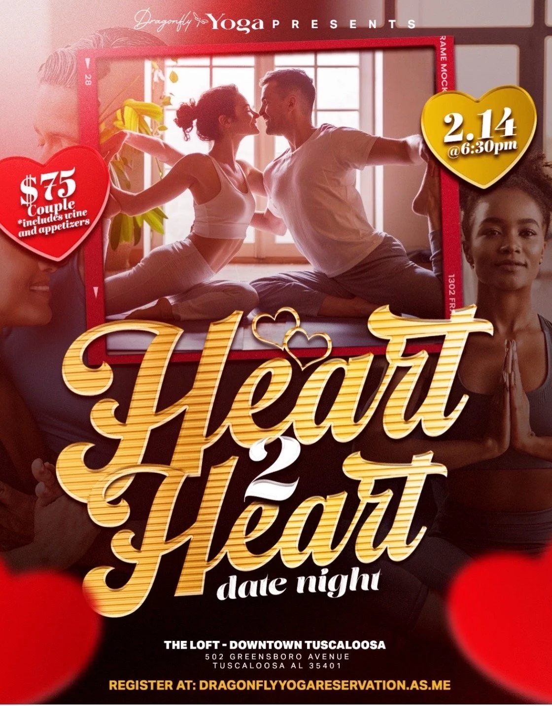Categories: All Private Sessions Events Classes All | Private Sessions | Events | Classes | Heart2Heart -Birmingham $65.00 Yoga Mat $20.00 Galentine’s: Decompress and Destress $30.00 Heart2Heart Valentine’s Date Night (Tuscaloosa) $75.00 Friendsgiving Fun with Flow $30.00 Private Session $50.00 Huntsville-Couple’s Date Night with a Twist $75.00 Montgomery-Couple’s Date Night with a Twist $75.00 Tuscaloosa-Couple’s Date Night with a Twist $75.00 Birmingham- Couple’s Date Night with a Twist $75.00